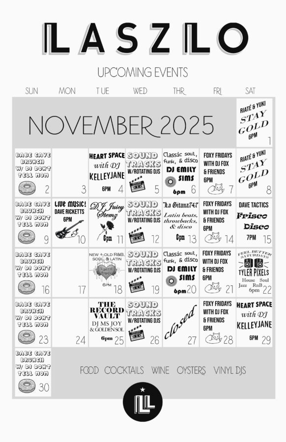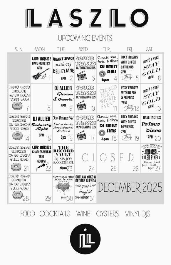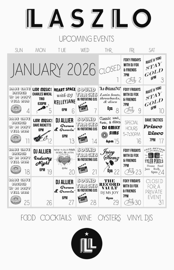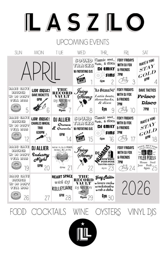 Laszlo is an ideal destination for happy hour gatherings, a pre movie hang, date night, an aperitif before your main event, or a nightcap after supper. We offer indoor bar and booth seating with a newly appointed upstairs lounge area. Whether you’re listening to live local musicians or stylistic vinyl DJs, feel at ease with our warm bar hospitality.