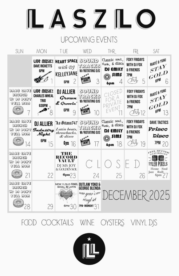 Laszlo is an ideal destination for happy hour gatherings, a pre movie hang, date night, an aperitif before your main event, or a nightcap after supper. We offer indoor bar and booth seating with a newly appointed upstairs lounge area. Whether you’re listening to live local musicians or stylistic vinyl DJs, feel at ease with our warm bar hospitality.